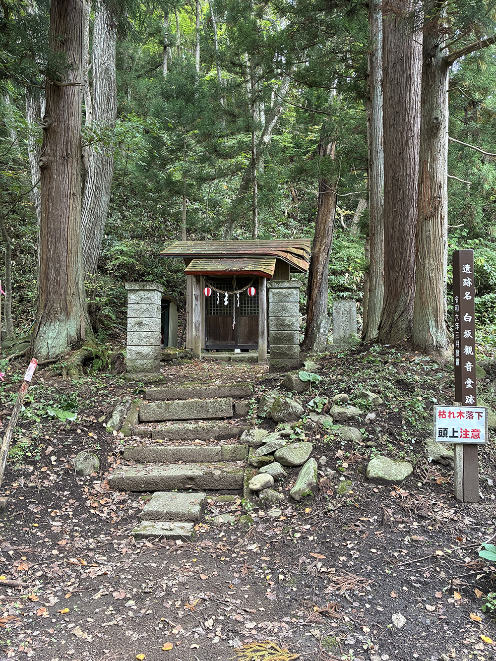 いまは橋が壊れたため、白坂薬師堂跡を通る道をきました。