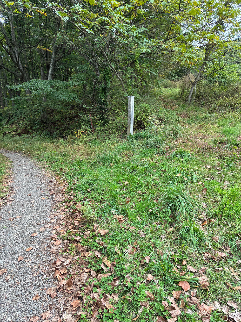飛脚の殉職した地には石碑と立て看板があり、さらに5分ほどで七時雨山登山道入口が右手に分かれます。