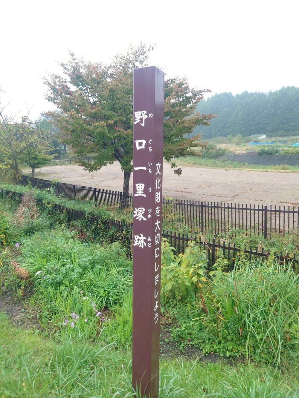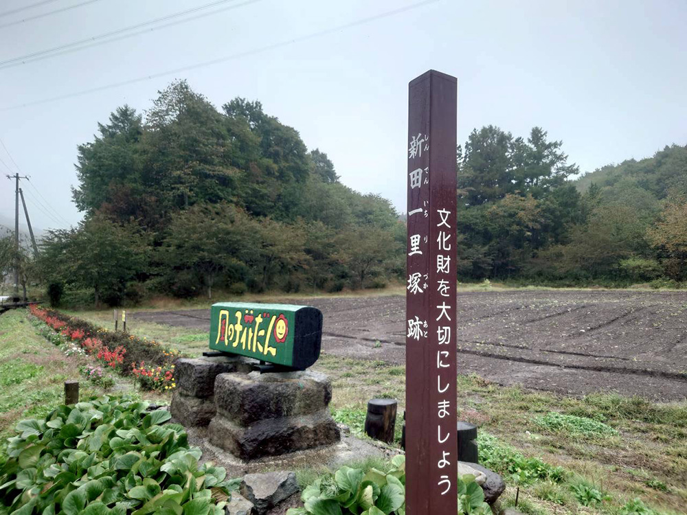 破壊されて痕跡も無く、畑地の中に目印の標柱が立つ。