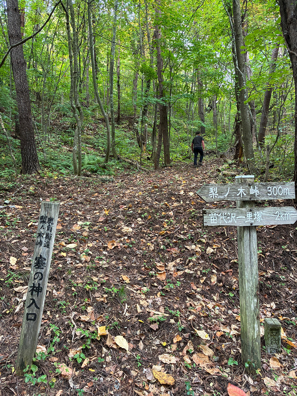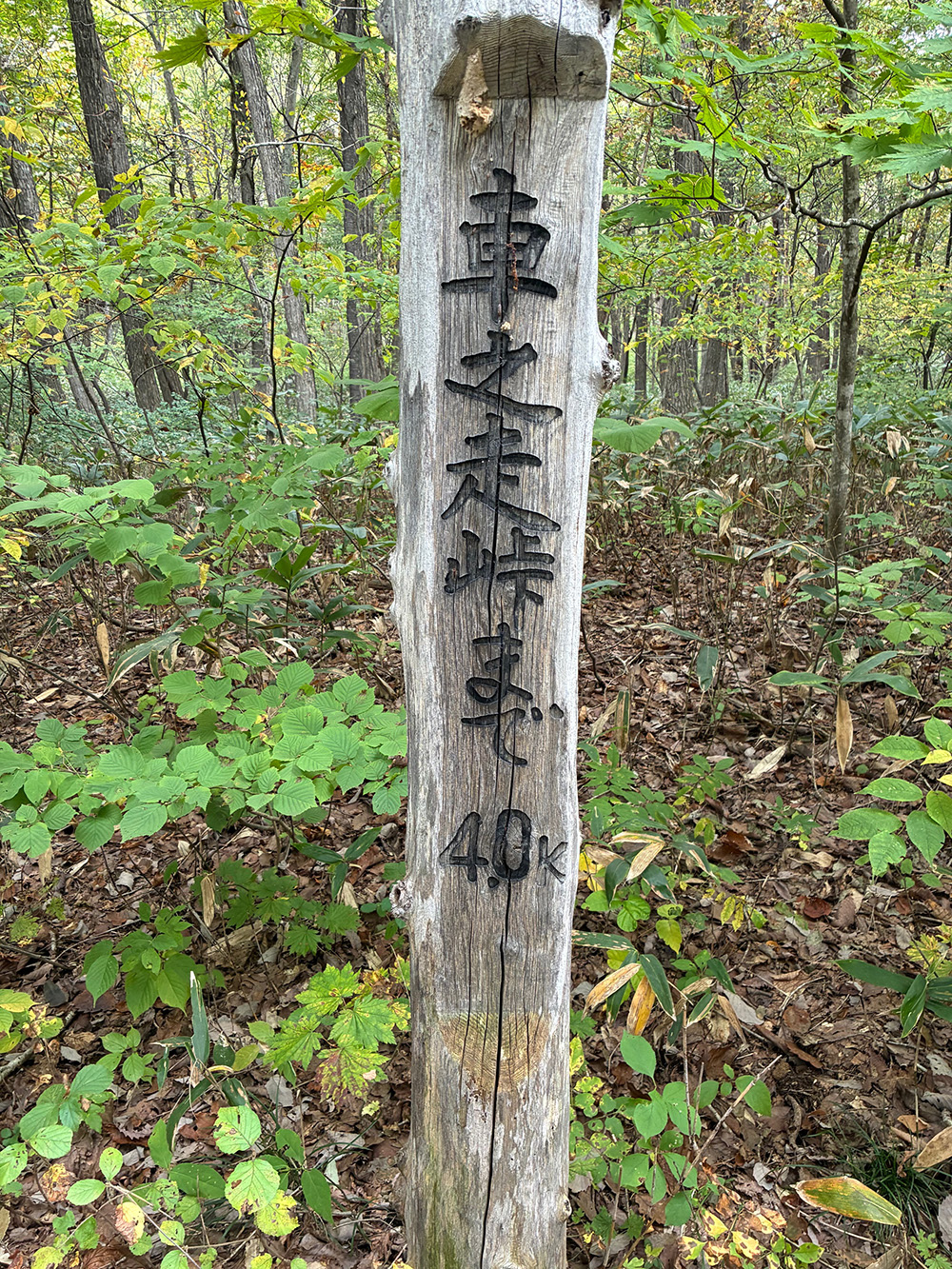 元の道に戻ってからすぐに、車之走峠まで4.0kmという標柱が立っています。ここからが鹿角街道の古道になります。