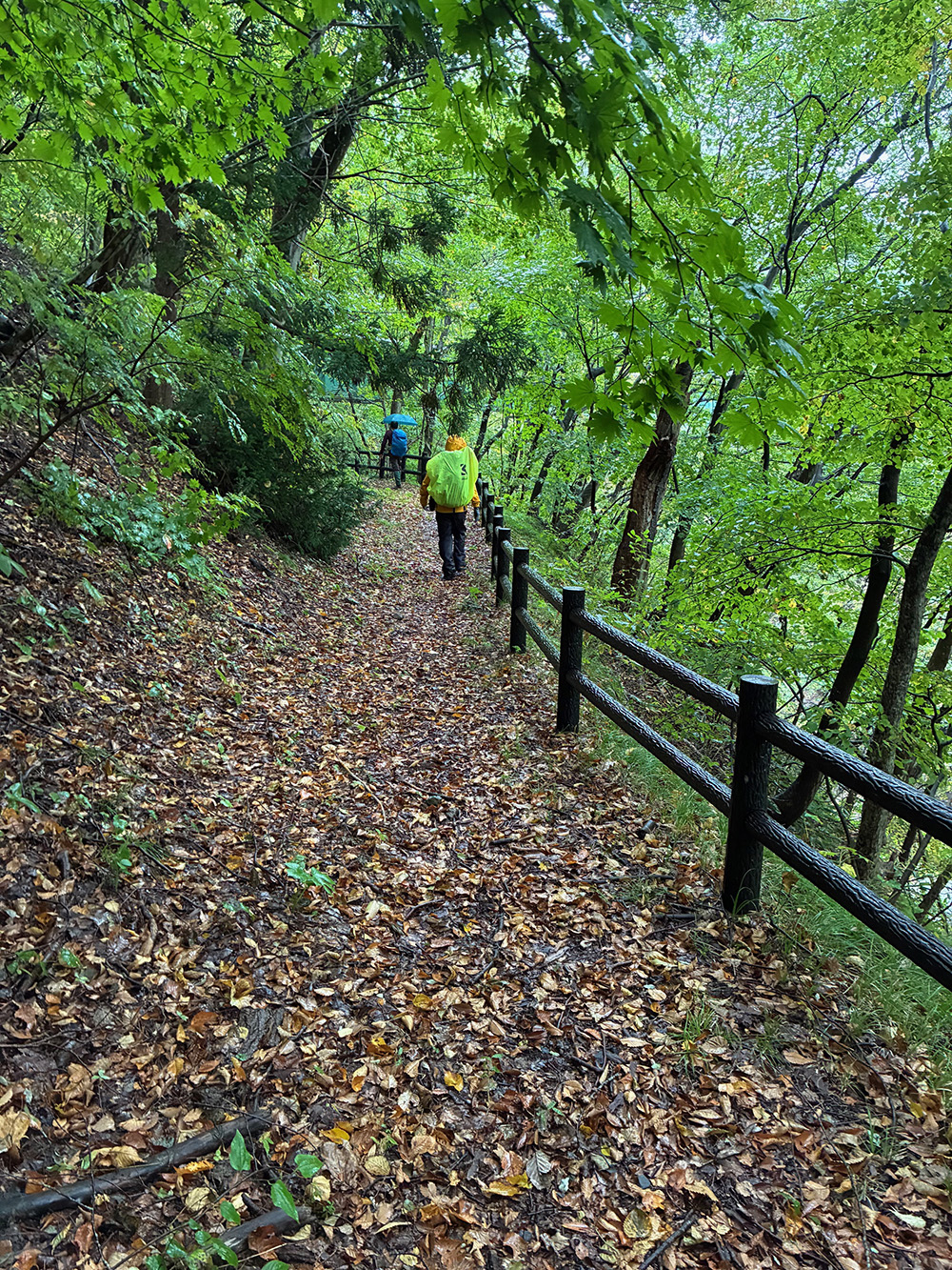 登りには急坂は少なく、路面はよく踏み固められて石もほとんどなく、歩きやすい道です。