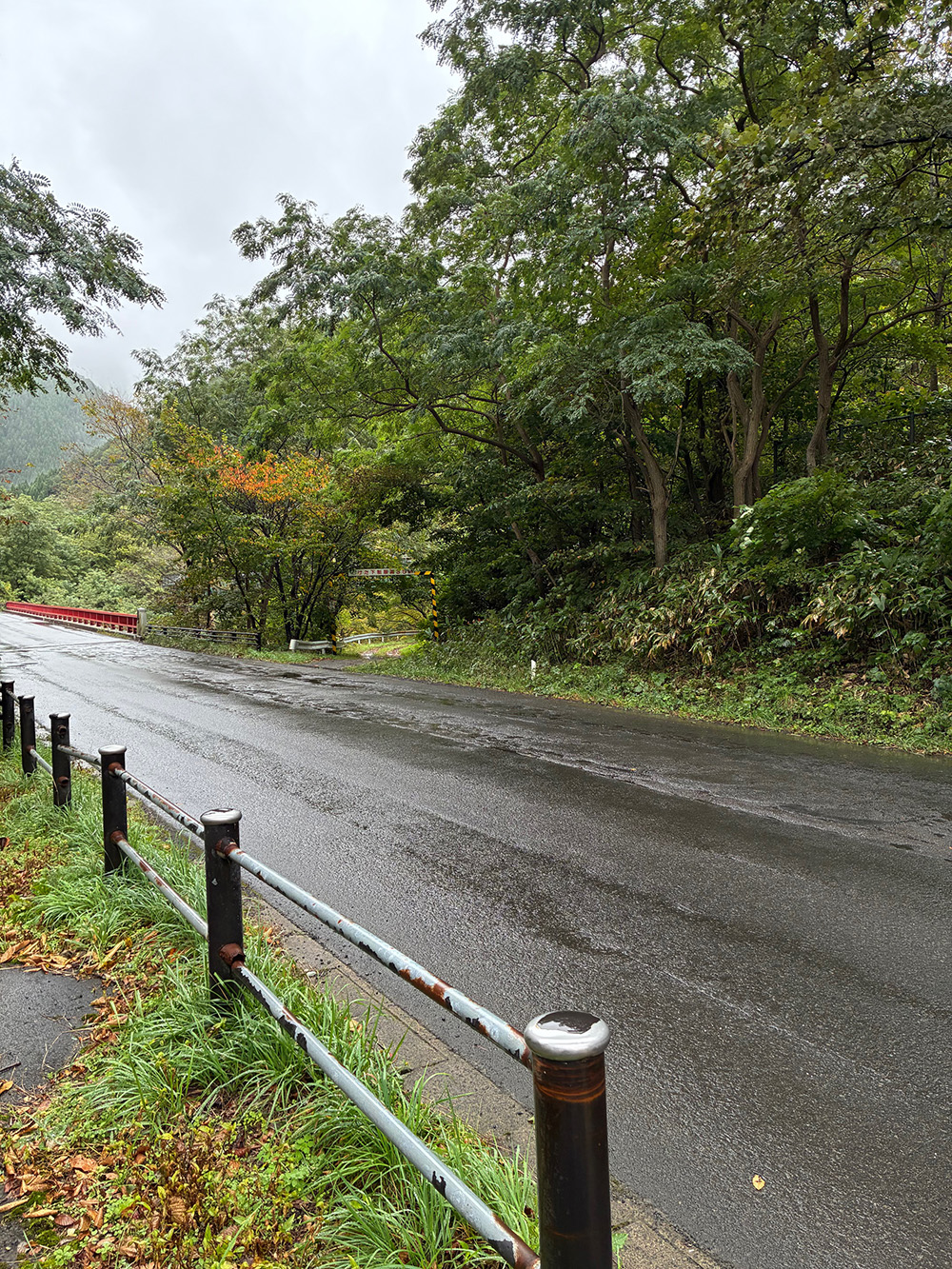 昔の鹿角街道は県道227号で「七時雨憩の湯」の前をとおり、このあたりで橋を渡っていました。