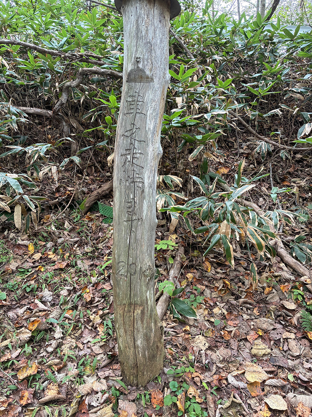 標柱は古道を整備している七時雨ロマンの会会員の手作りのもので、この先も導かれながら歩みを進めることになります。