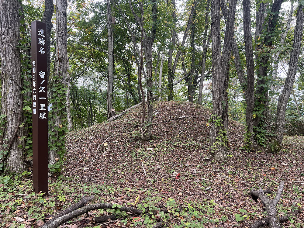 車之走峠に登る手前1km、標高600mの尾根鞍部平坦地に、街道をはさんで一対が現存する。盛岡の起点からは11里。高さは約3.0m、裾は約7m、二つの塚の裾部間は約5mで道路幅になる。