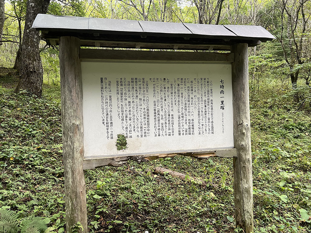 今も当時の原形を残す、八幡平市指定文化財史跡。盛岡にある起点から7里の場所にある。左右とも個人所有の畑地の中にあり、道路が整備された結果、幅員などの旧状は不明。