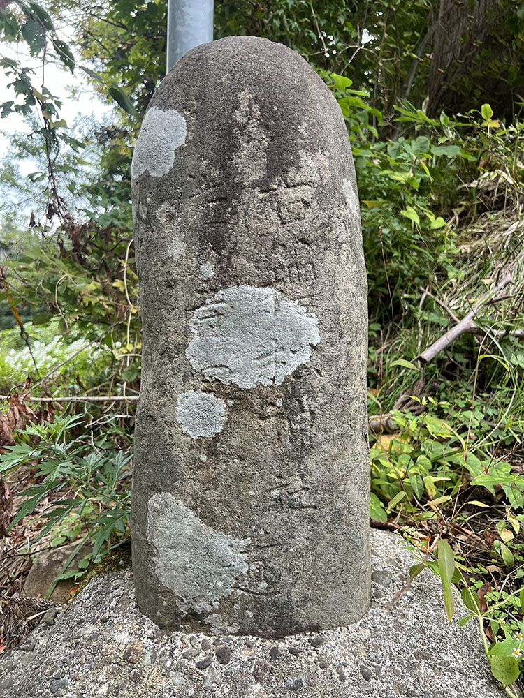 八幡平市田頭第1地割りの分岐点に高さ1.3mの自然石の道標がある。安永五年(1776)7月建立。