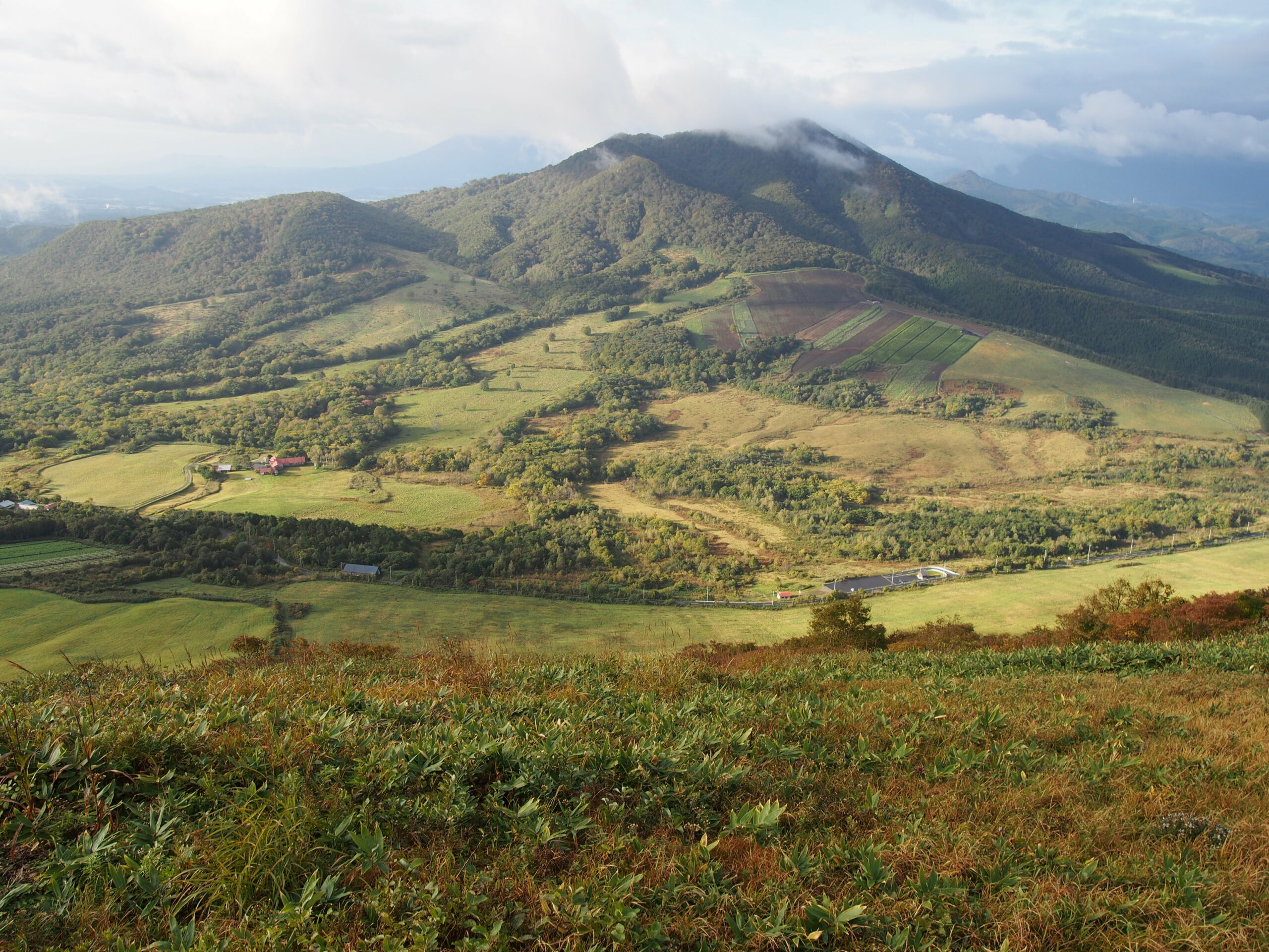 田代山、毛無森、焼岳、西岳が外輪山を形成し、牧場となっている田代平(たしろたい)カルデラを囲んでいる。
