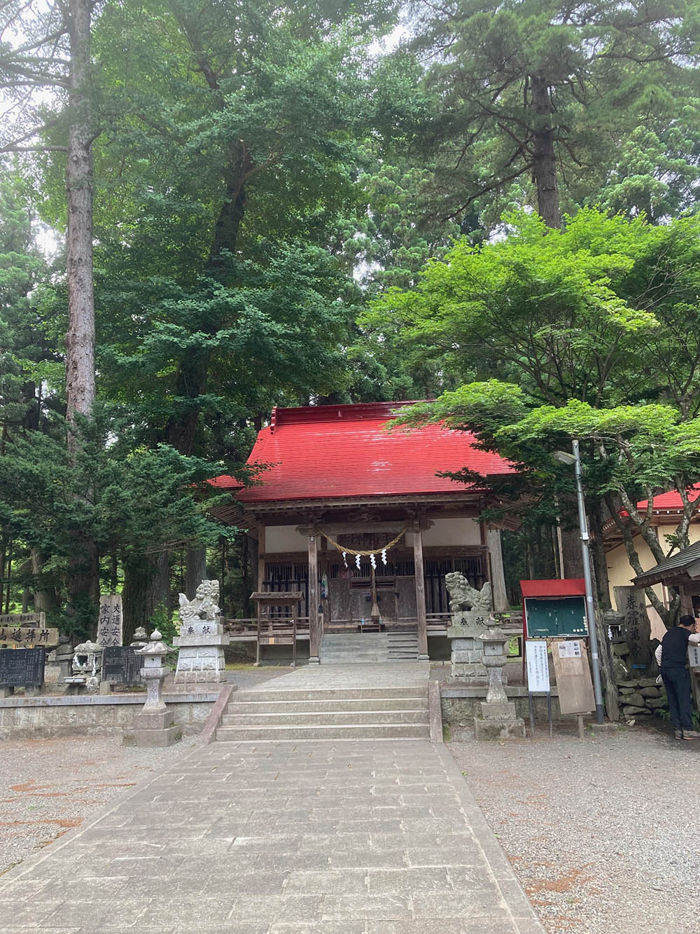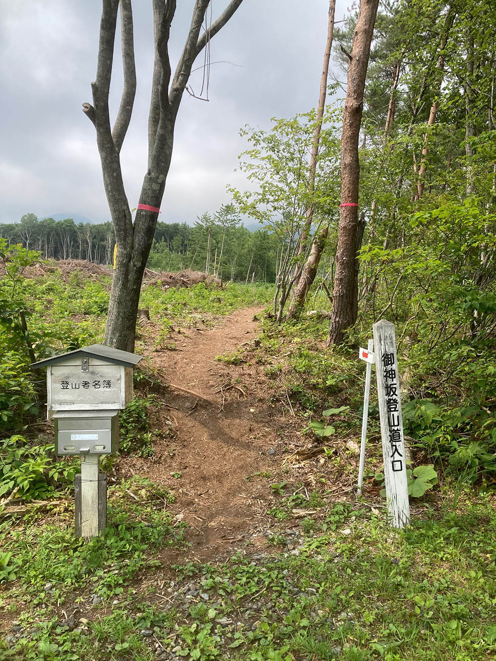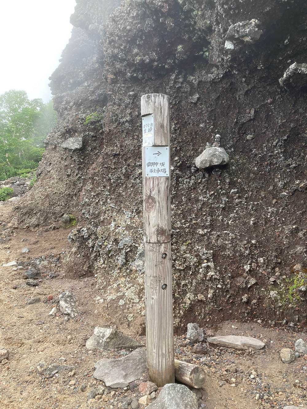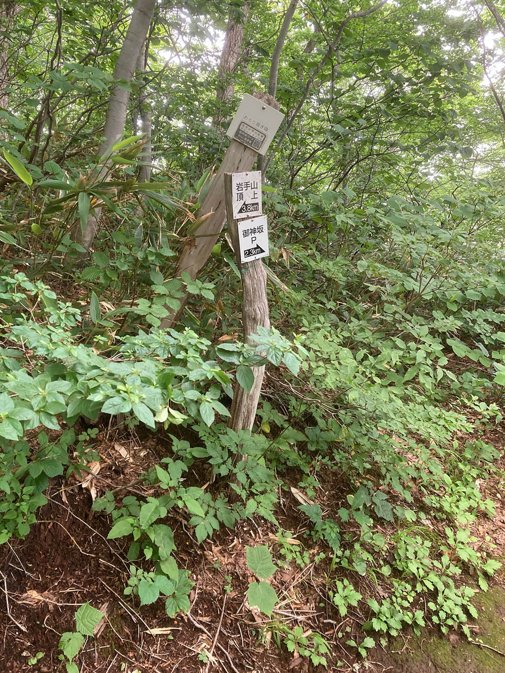 本来は、麓の岩木山神社で参拝を行って登拝道を登るべきですが、岩木山神社から登山口に直進する道は、小岩井農場が所有する土地であり、かつ藪で覆われているため、参拝後は車で登山口に移動するのが現実的です。