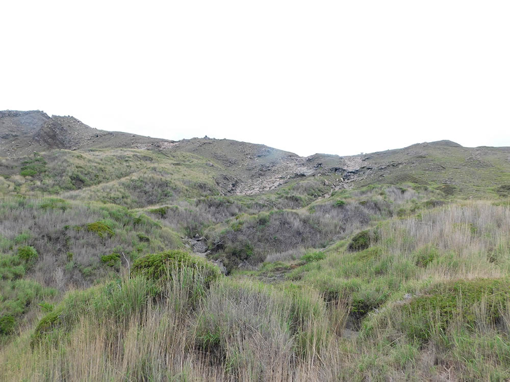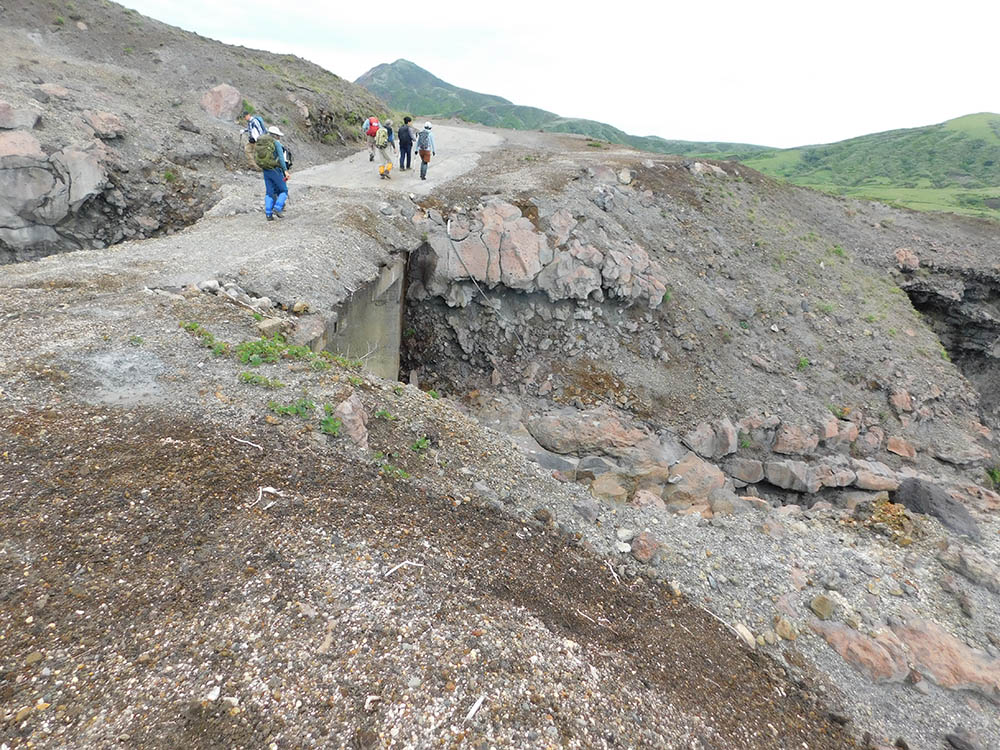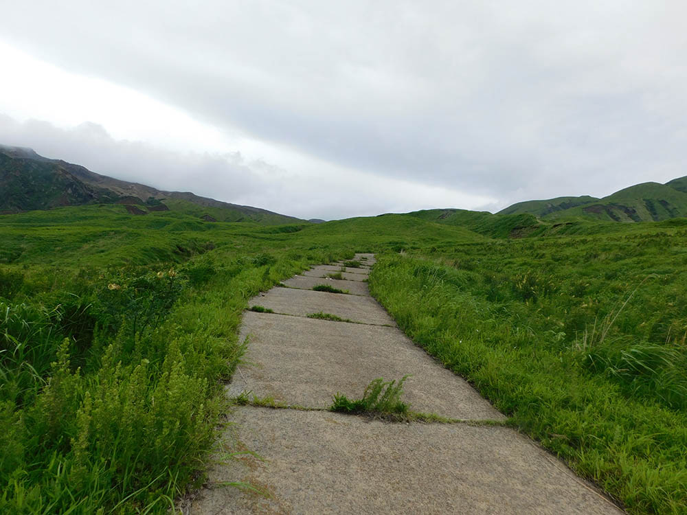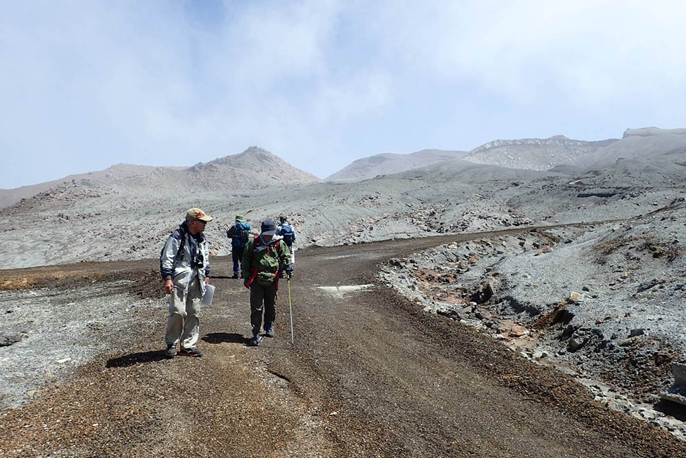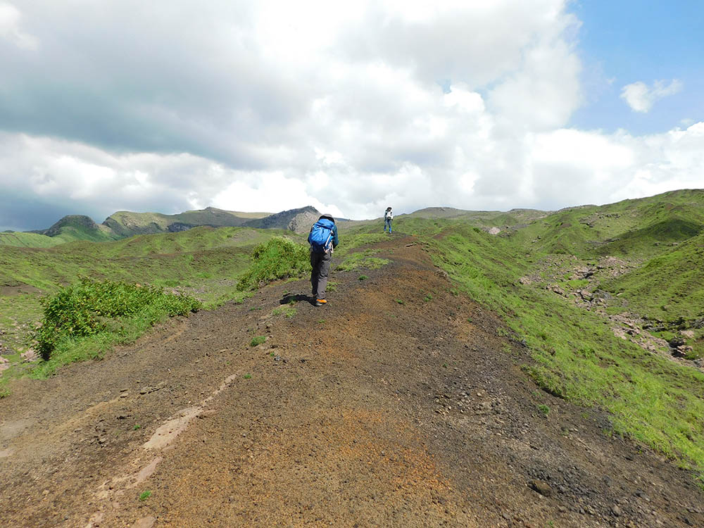 火山ガスのため次第に草丈も低く乏しくなり、やがて砂礫地になると径らしい径は消える。