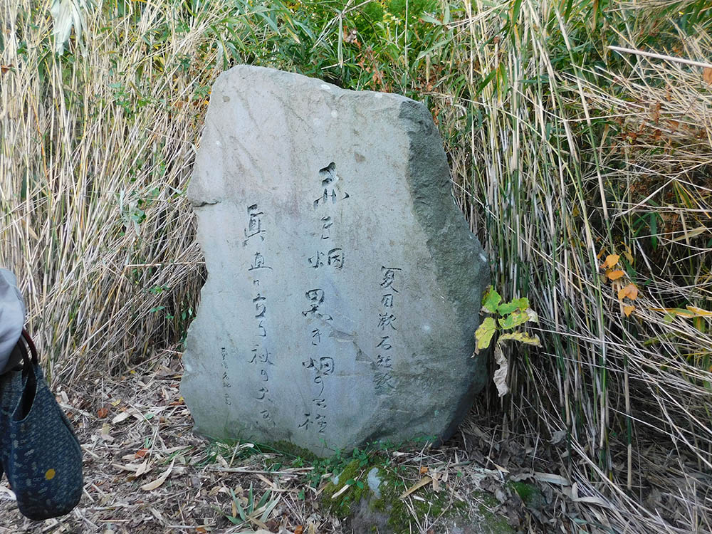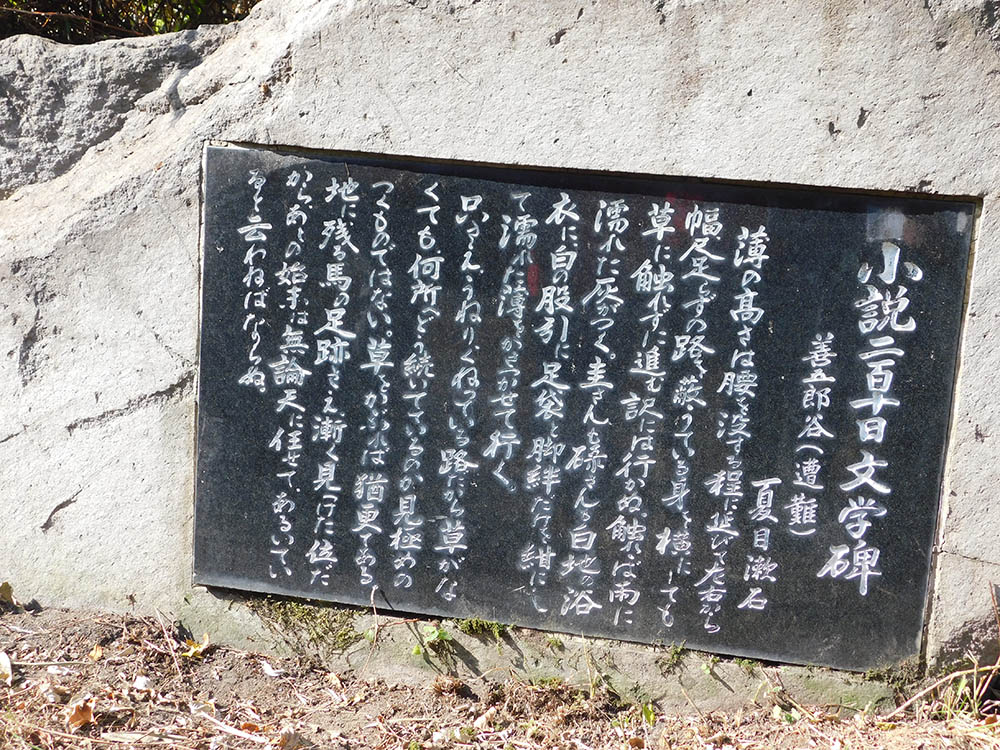車道を1㎞ほど下った先の右手には、夏目漱石の文学碑(遭難碑)がある。