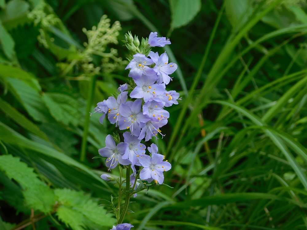 オオルリシジミ、ヤツシロソウ、ハナシノブをはじめ、ミヤマキリシマ、サクラソウ、キスミレ、ツクシマツモト、オキナグサ等、季節ごとに登山者の目を楽しませてくれる。