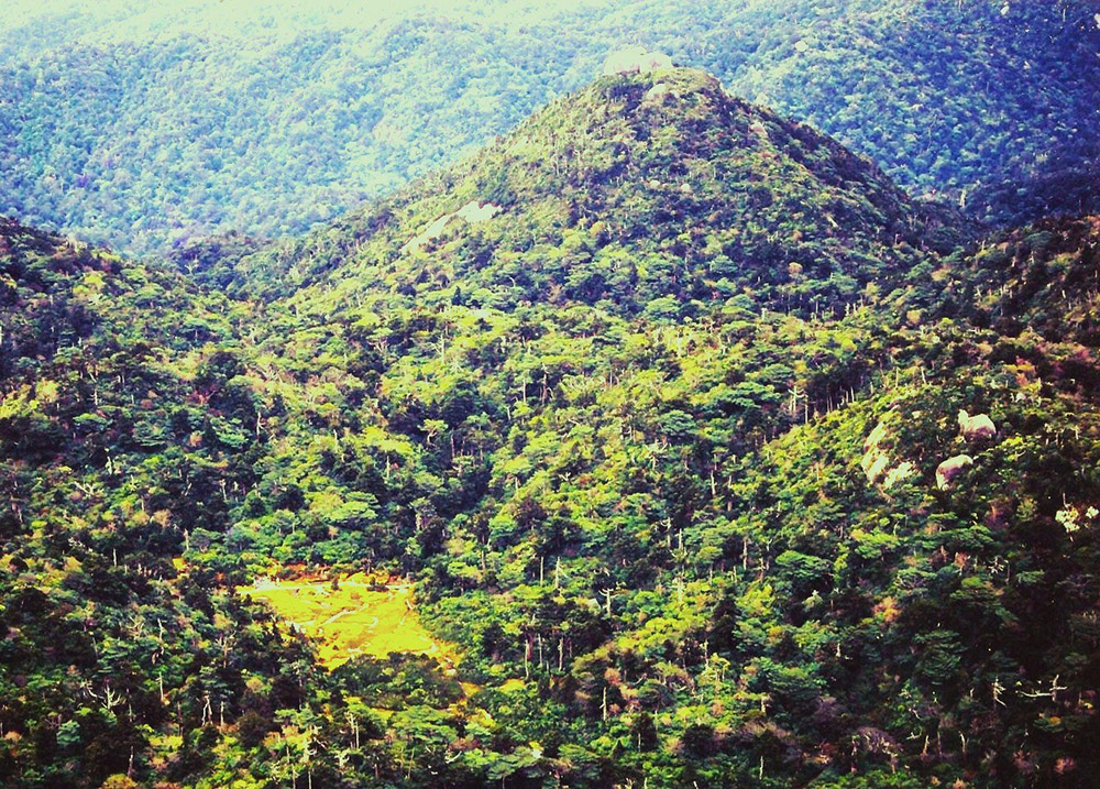 その名の通りビャクダン(ハイビャクシン)の多い露岩の山頂に立つと宮之浦岳をはじめ、屋久島中央部主稜の山々が一望のもとに開ける。