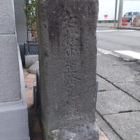 石の鳥居には、「蘆名義廣 末孫 岩淵伊勢次郎」と刻まれている。