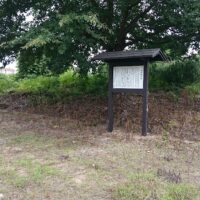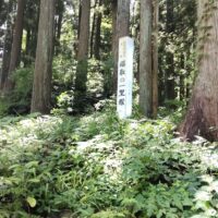 峠頂上からゆるい坂道を下ったところに戊辰戦役の会津藩防塁跡の標柱が立てられています。
