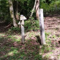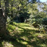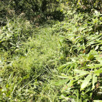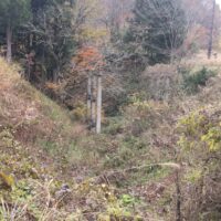 車峠は、茶屋跡から200mほど西に進んだ地点から小さな沢の右岸沿いに開削され、現在は木沢沿いに下る道そのものが存在せず、荒れた沢筋となっています。