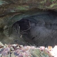 山頂手前の三叉路を右折し、20分ほど進むと洞門に出ます。