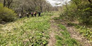 車峠藪漕ぎ、右が旧49号国道(廃道)