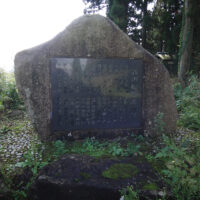 小高い杉の木の脇に馬頭観音、湯殿山、地蔵様、追分道標があり、(右新発田、村上道 左水原、五せん、小川通)と刻まれています。