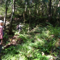 今は3軒の集落です。猪の掘り返しが散見されます。芝生の街道を進むとお屋敷から奥様が出てきて会津街道について教えてくれました。ガイドの経験もあり、蛭対策も教えてくれました。