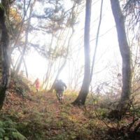 木の枝つかまりながら崖を降り鳥井峠に到着。