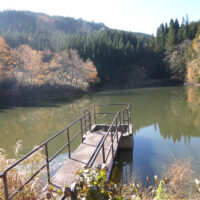 水をたたえた堤を広葉樹や針葉樹が囲み、堤のなかに取水塔が設置され、鉄製の手摺りが廻されていました。