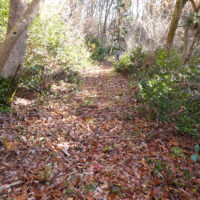 幅3mほどの道が杉林に向かっています。切土の道を通過。