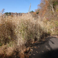峠を緩やかに下ると、道には背丈より高いススキなどが濃密に生え、先が全く見えません。