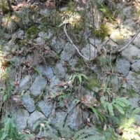 行く途中の右斜面に、古い石積みやコンクリートによる土留めの擁壁が、何カ所か施工されています。