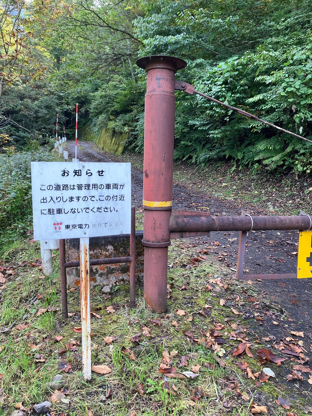 ゲートがあり、車での進入はできません。また管理用車両の通行の妨げにならないよう注意してください。ゲート付近の駐車もできません。