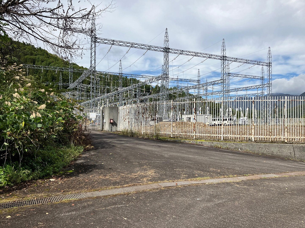 東京電力玉原揚水発電所管理用道路のゲートをくぐると、すぐにトンネルがあり、この先は整備された道が1kmほど続きます。管理用道路の終点には大きな変電所が待ち構えています。