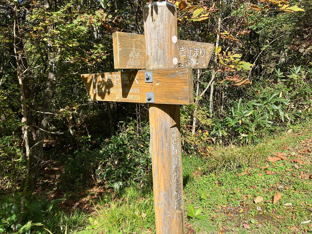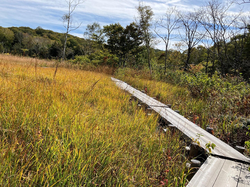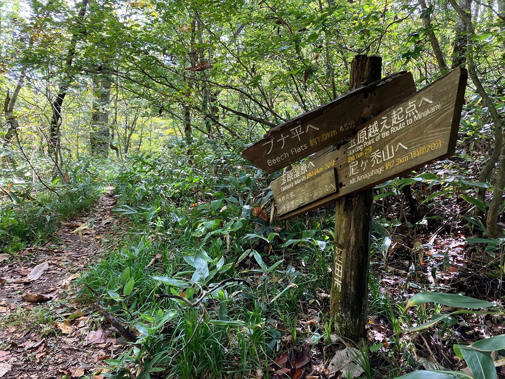 復路は途中まで来た道を戻り、玉原湿原西の道をたどって玉原越えに戻り、往路を下ります。