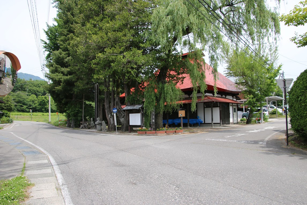 JR信濃大町駅よりタクシーに乗り、大町市平野口の野口村神明社(大宮神明宮)に立ち寄り、見学の後、タクシーにて野口橋経由、高瀬入交差点より右折するとすぐに西正院に着きます。