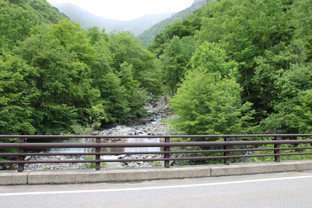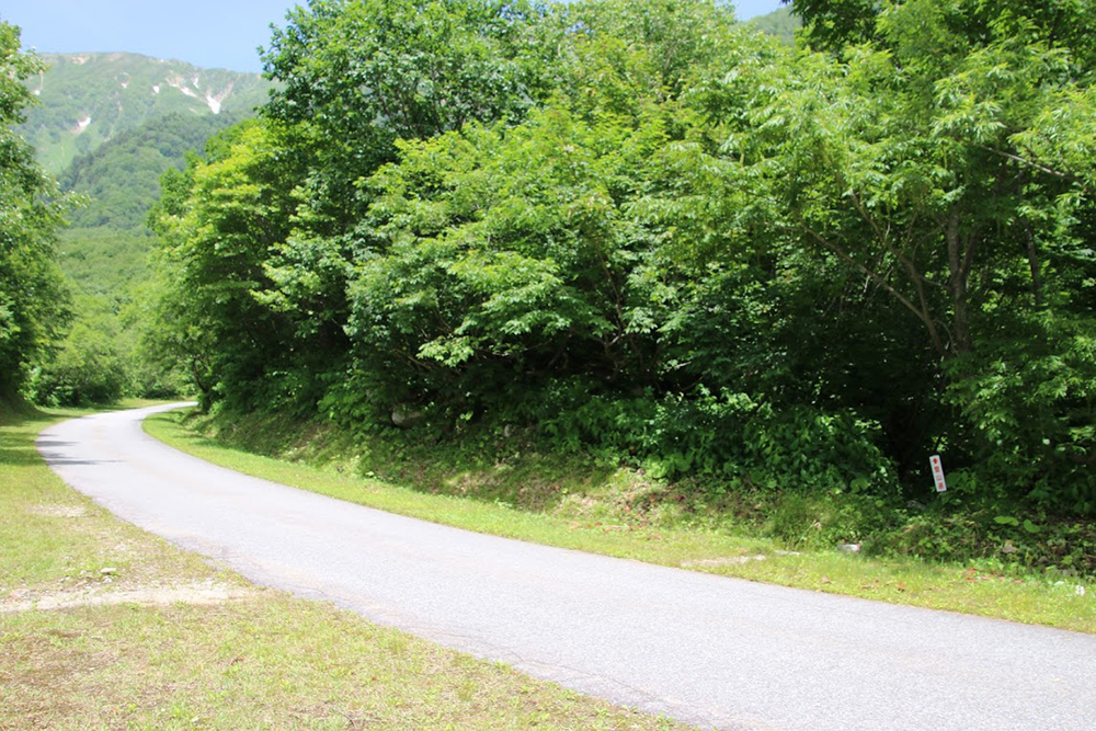 野口神社より扇沢駅まで大町アルペンラインを通り、徒歩では約4時間(12km)