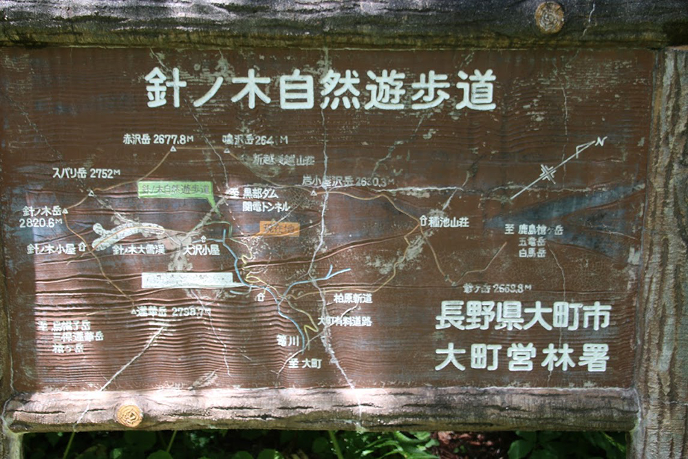 岩小屋沢を過ぎると、昭和30年代につくられた針ノ木自然園の案内板が見えてきます。