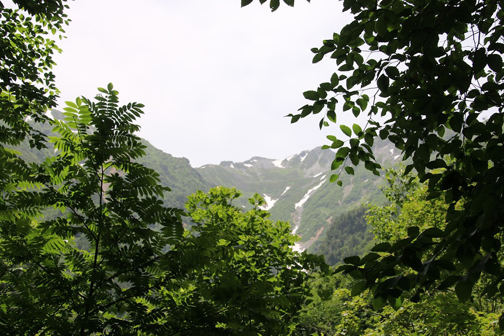 しばらく蓮華岳に沿って下り、白沢の橋で左岸に渡り、15丁ほど下って山の神に着きます。