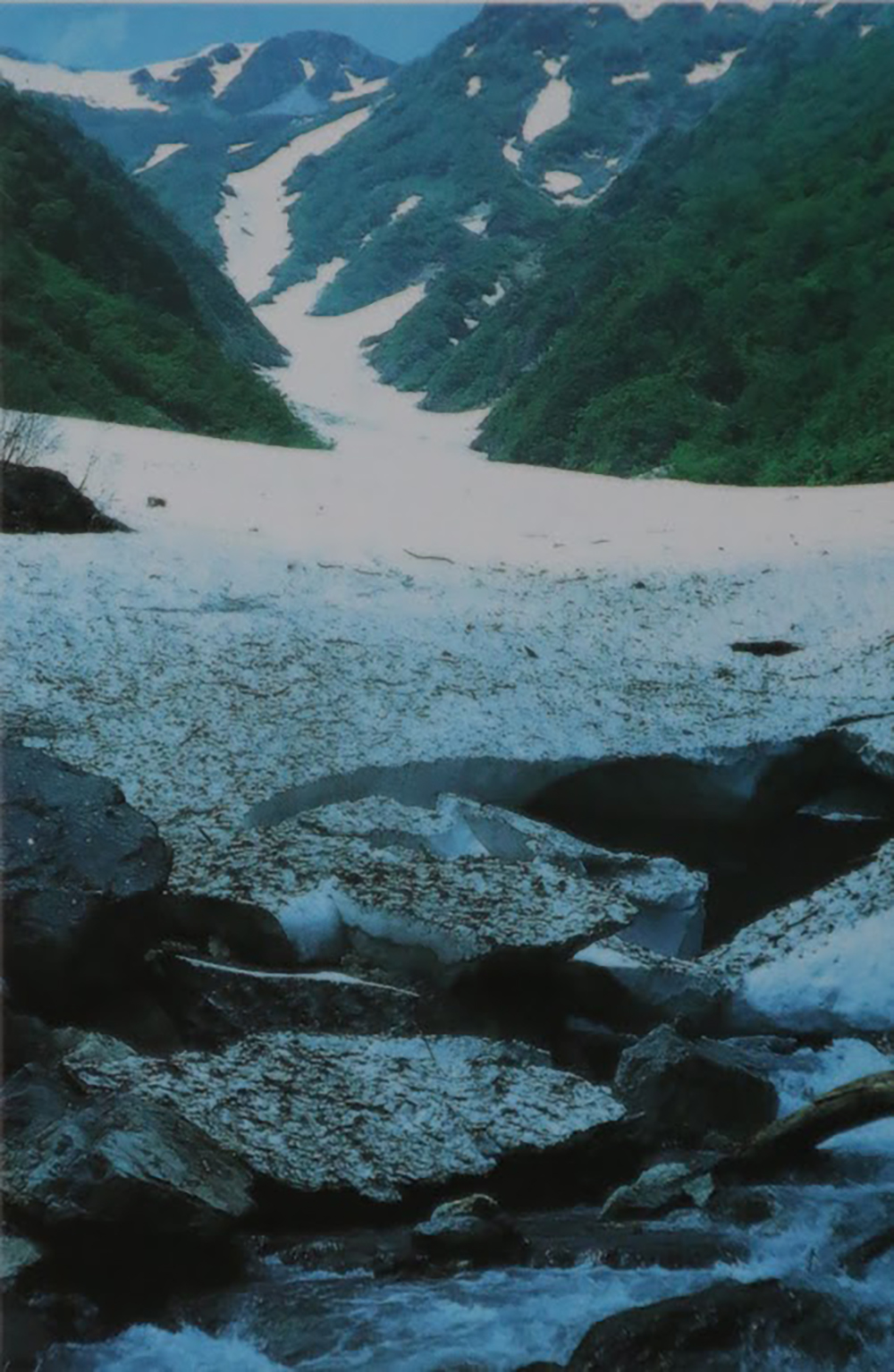 峠までせりあがる雪渓の入口は、急な雪の堆積でここを牛馬で降りるのは難しかったと考えられます。