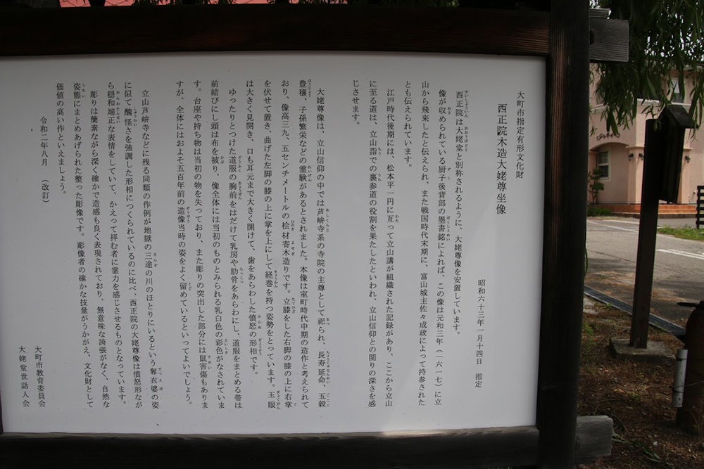 西正院は立山信仰の証であり、佐々成政の針ノ木峠越え伝説の大姥尊像を安置しており、扁額の内容が興味深い所です。