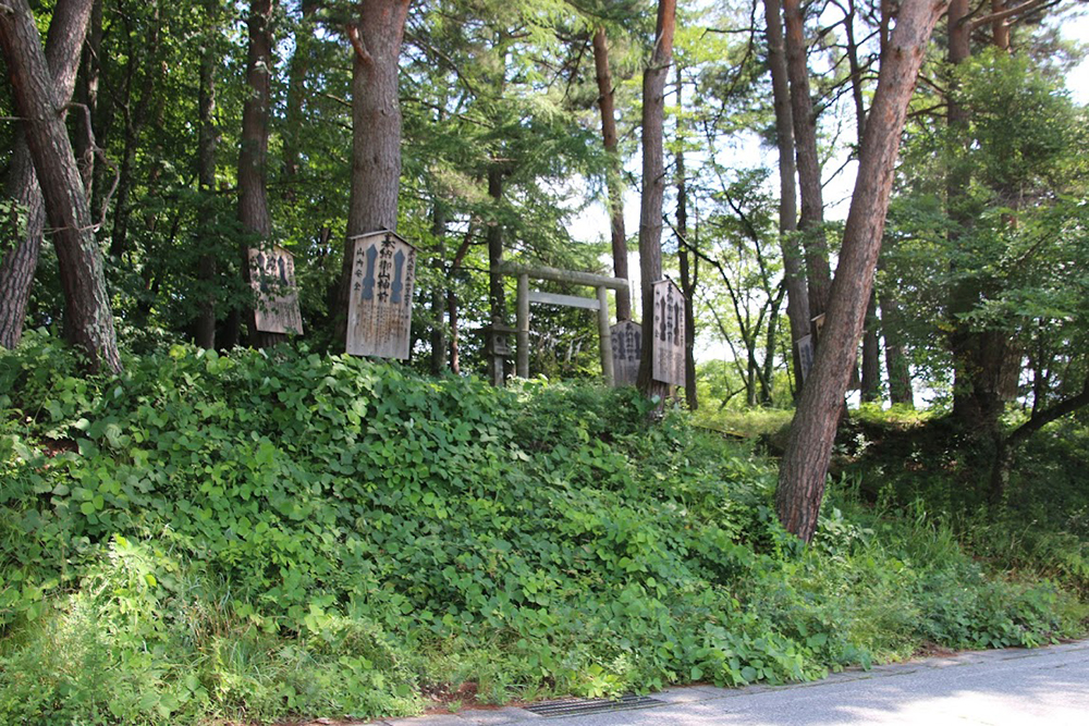大町アルペンラインの大町市の給水施設がある道路右上方に山の神があったとされる杉木立および少し平らな場所があります。(寄せ沢、蛇澤の中には山ノ神の痕跡は全くないので探すのは困難。)