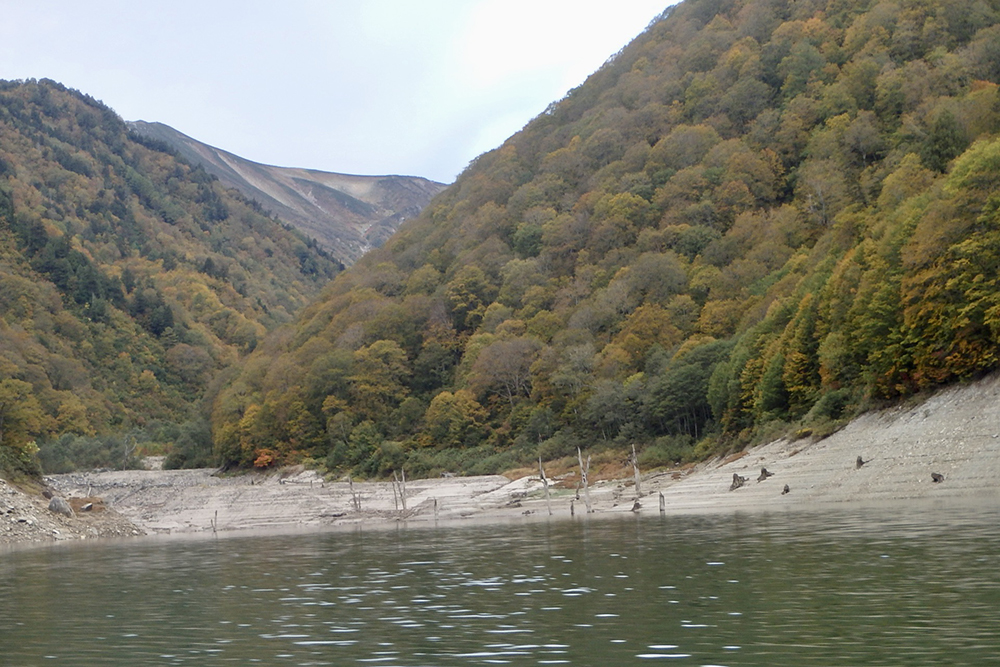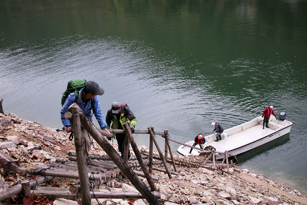 平へは黒部ダムからアクセスすることができます。地形図では湖岸を水平にたどる道ですが、実際に歩いてみると沢や崩壊地を横断するための上り下りが多くあり、精神的にタフな道です。