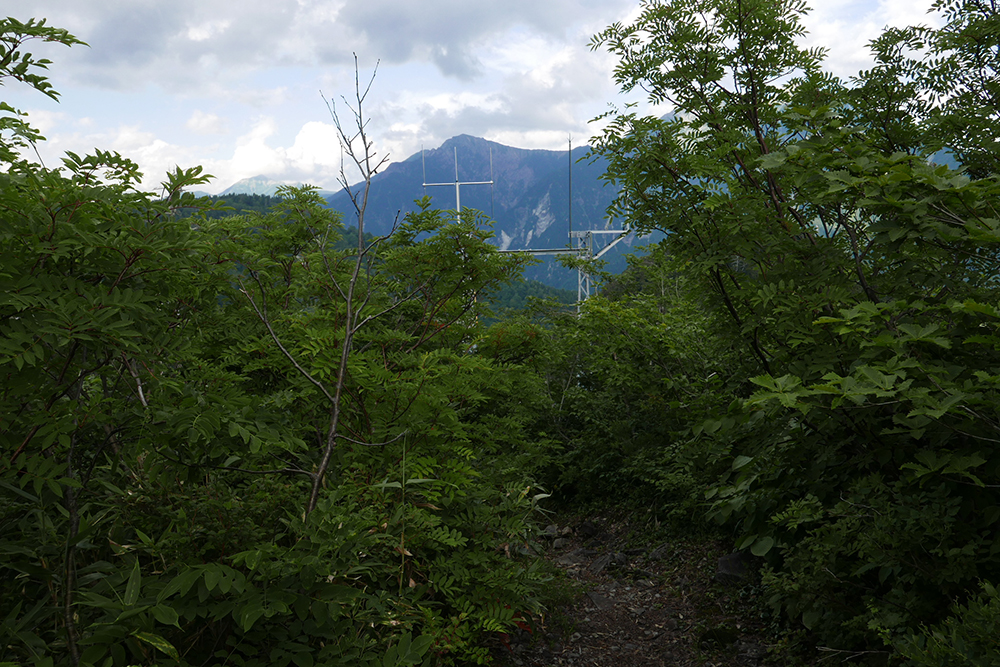 資材が置いてある裸地に続いて電波塔に出会ったら、刈安峠まではあとわずか。