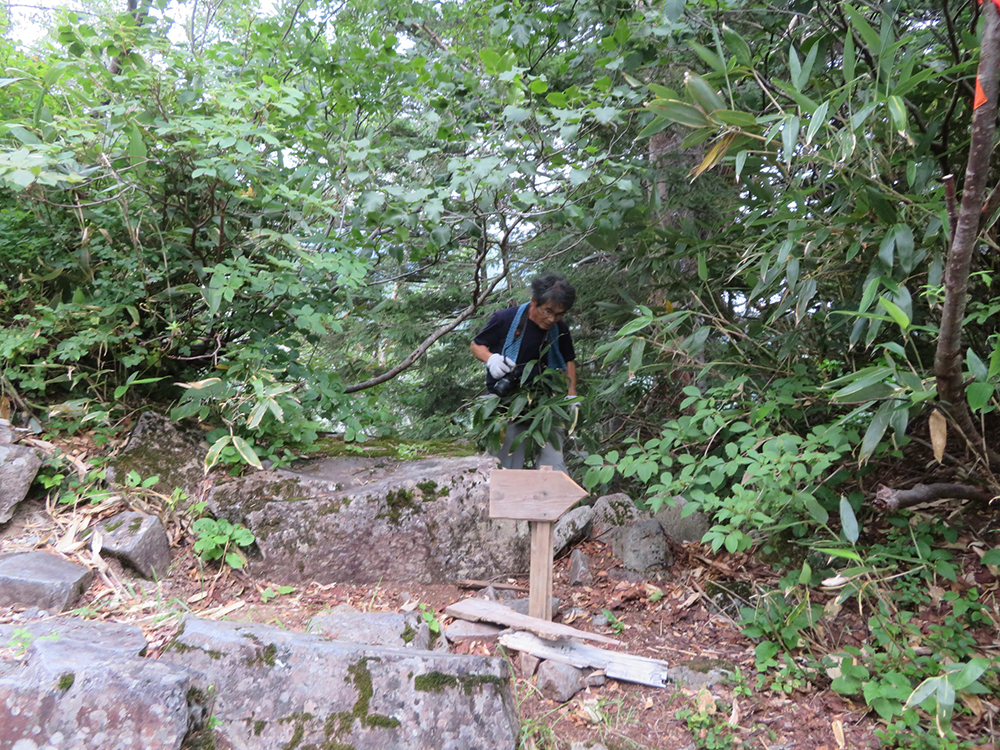 古道はここで現在の縦走路と直行していましたが、カルデラ側と中ノ谷側のいずれにもその痕跡は見当たりません。