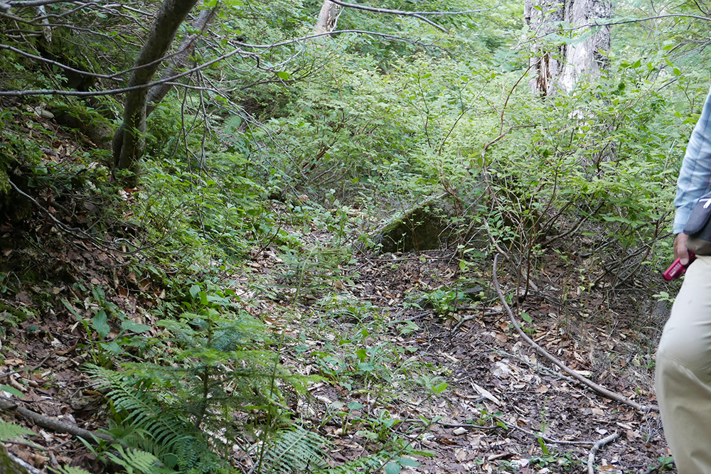 比較的なだらかな場所で幅1.8mの古道があっても不思議ではなく、まわりは大きなブナなどの混合樹林帯です。