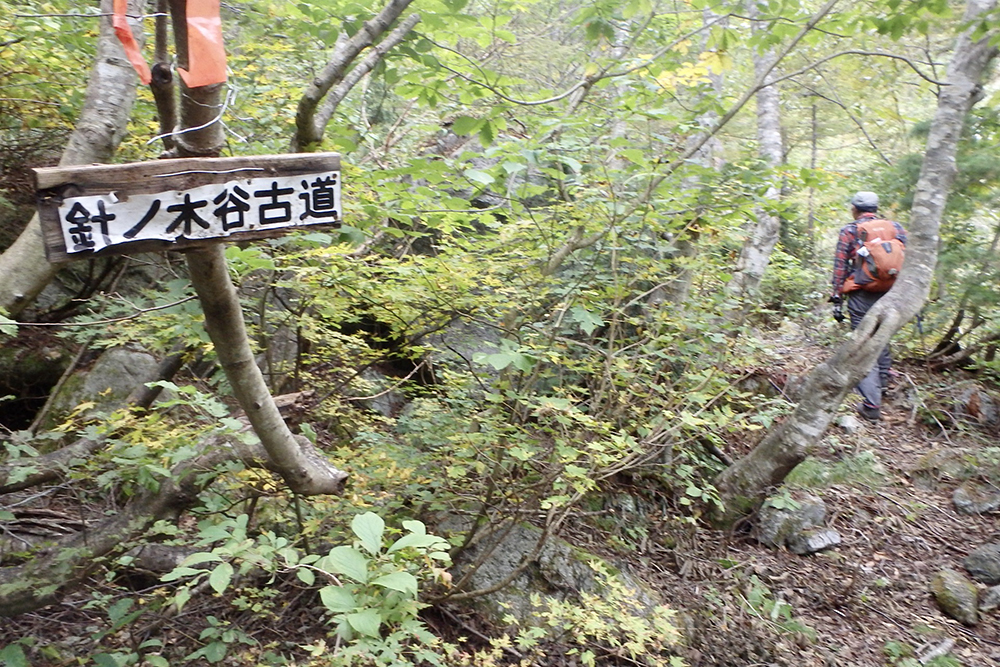 針ノ木谷の古道が復活されたのは平から船窪分岐までなので、船窪分岐より上流部は道がさらに不明瞭になります。