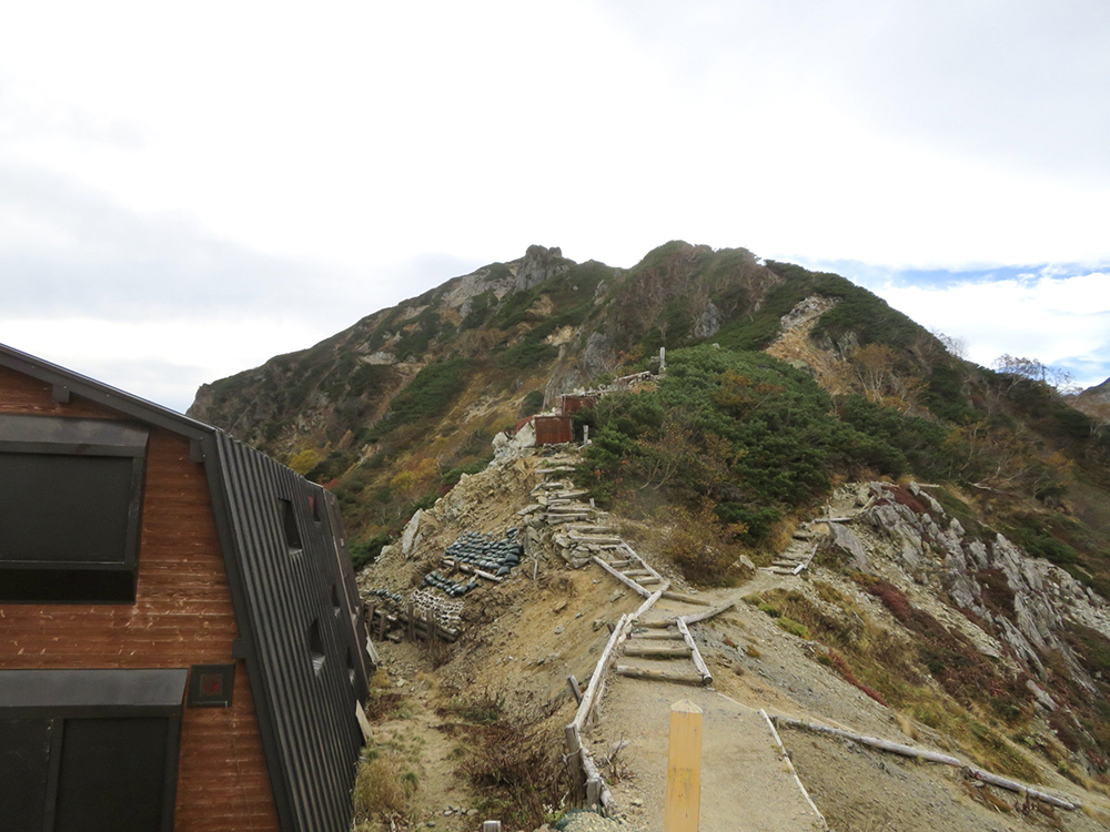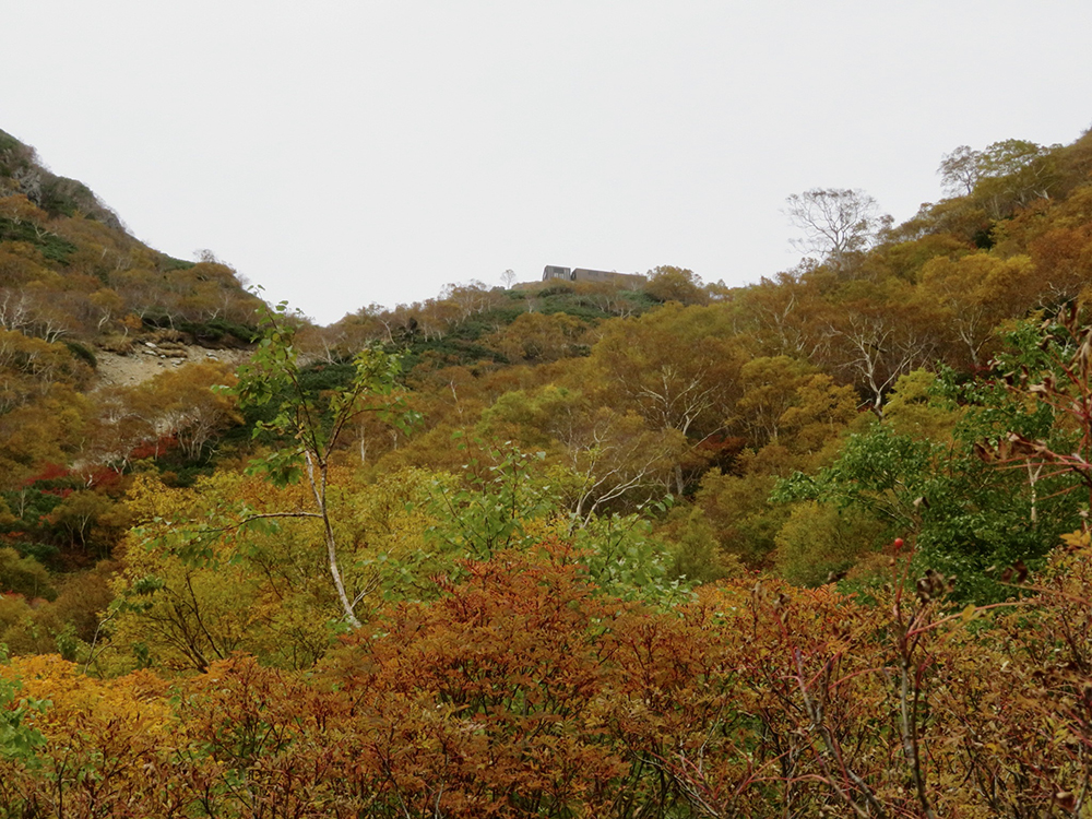 分岐に残る山小屋の跡は、1923年(大正12年)に建てられた五色小屋です。