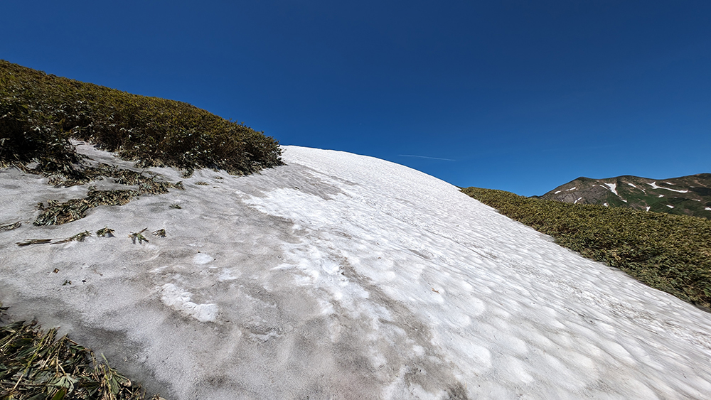 三ノ峰避難小屋の手前は6月末まで雪が残るため、登山道の状況を確認し装備の準備をするのがおすすめです。