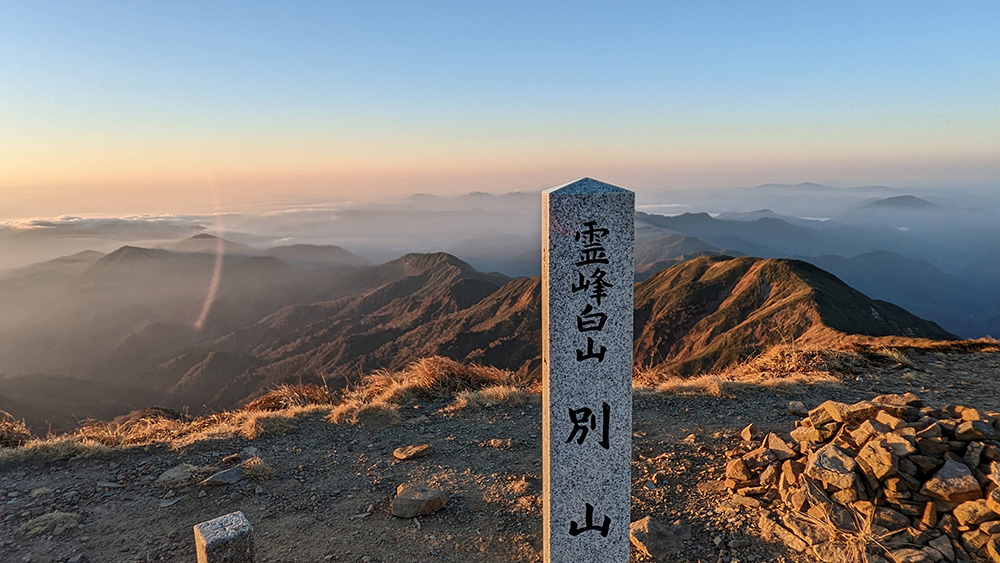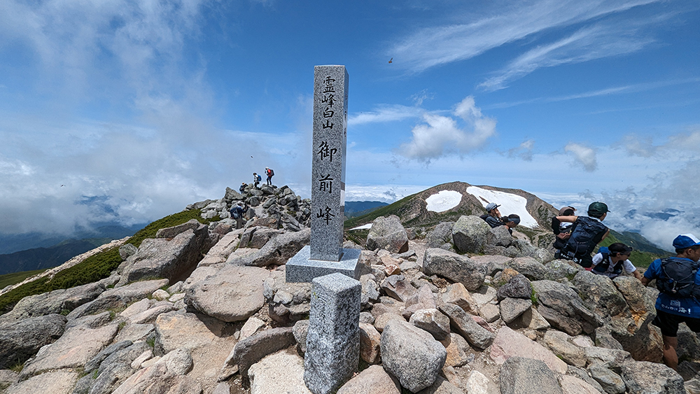 ここまででも約10kmの長丁場ですが、白山三山の一座に到達したという感慨に包まれ、疲労も忘れるでしょう。