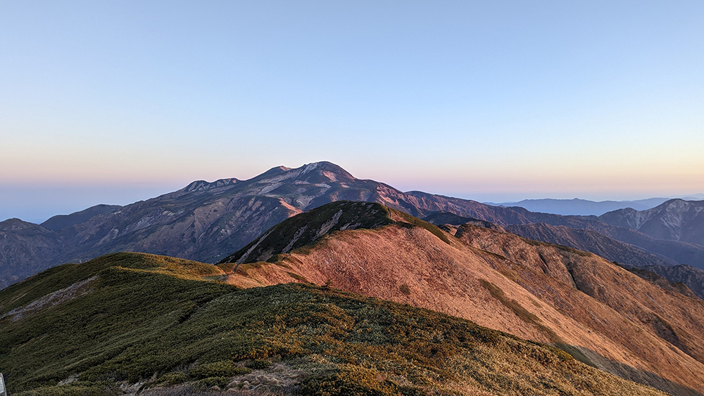 たおやかな白山と大汝峰の姿を目に焼き付け、次の行程への鋭気を養います。