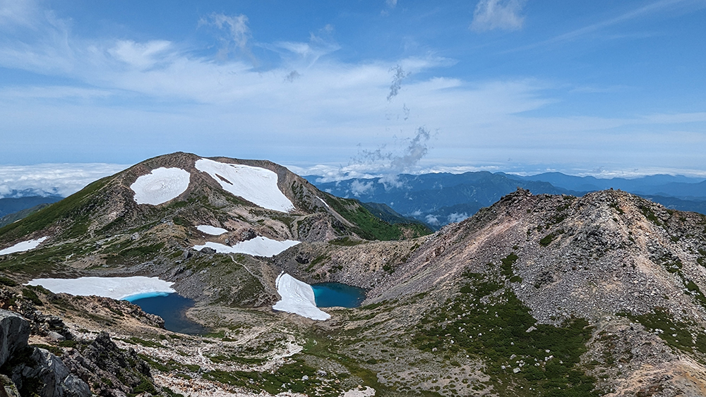 天気がよければ、御嶽山・乗鞍岳・北アルプスの姿を、北には日本海を遠望できます。御前峰で余力があれば、お池巡りや大汝峰をぜひ楽しんでほしいと思います。