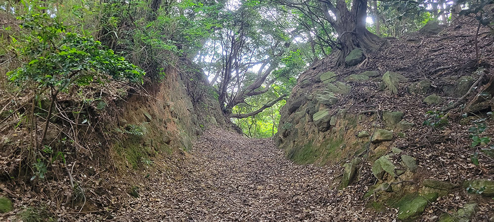 鞆ケ浦道は、大森の仙ノ山から山吹城の東側の尾根を抜け、柑子谷(こうじだに)と呼ばれる地域から鞆ケ浦に至る全長約7kmの街道です。