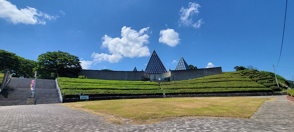 6基の総ガラス張りのピラミッドが並ぶ砂をテーマにしたユニークな博物館です。